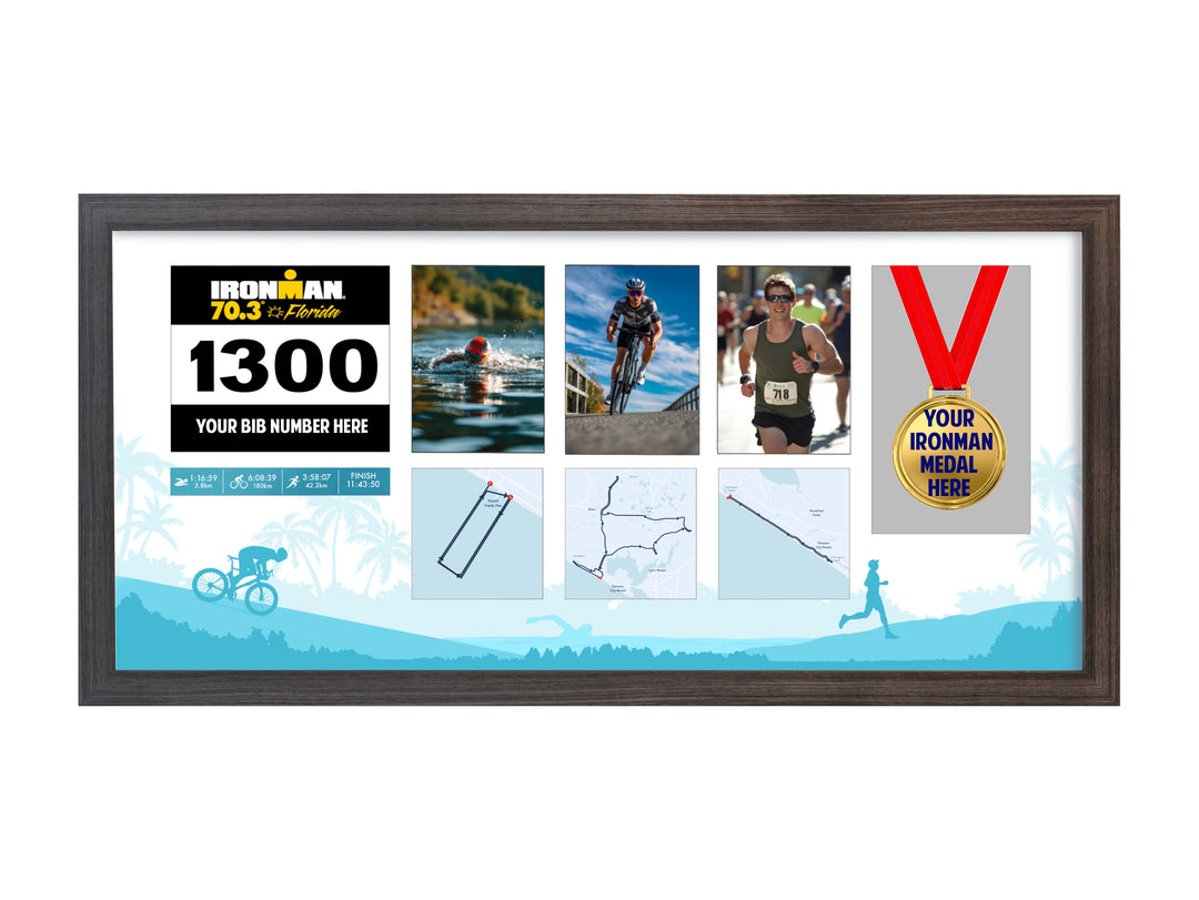 Display your Ironman medal in our uniquely designed frames, with a slotted back fixture so you can hang your medal with ease!